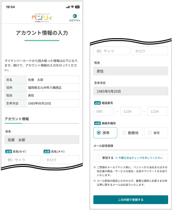 アカウント情報入力